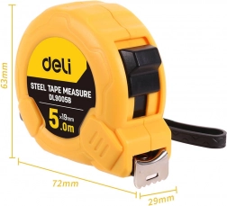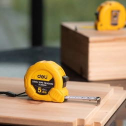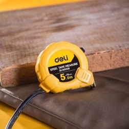 DELI rullemålebåndet er designet til præcis og komfortabel måling både inde og ude. Det stive stålbånd på 0,11 mm holder sig lige og knækker ikke, så du nemt opnår præcise resultater. Takket være automatisk lås og jævn tilbagerulning er arbejdet sikkert og intuitivt.