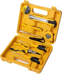 Sættet inkluderer: kniv med justerbar klinge, 10 ekstra klinger, 3m holdbart isolerbånd, og 2m rullemetermål. Derudover indeholder det 2 skruetrækkere med skridsikre håndtag, tænger i rustfrit stål og en korrosionsbestandig spændingstester til 100-500 V.