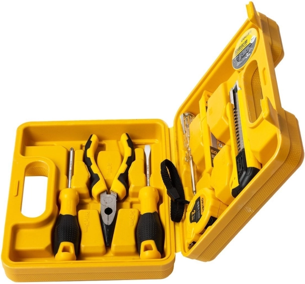 Deli værktøjssæt indeholder 8 praktiske værktøjer til husholdningsbrug. Alle komponenter er opbevaret i en praktisk kuffert for nem og bekvem opbevaring.