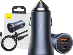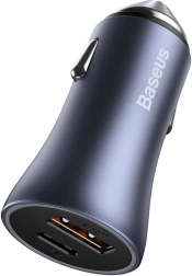 Baseus biloplader er udstyret med to porte - USB og USB-C, som muliggør samtidig opladning af flere enheder. Den understøtter de vigtigste hurtigopladningsstandarder, så dine enheder oplades flere gange hurtigere end med en almindelig oplader: