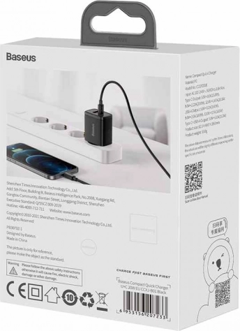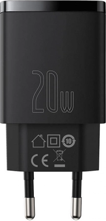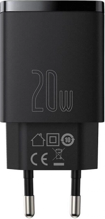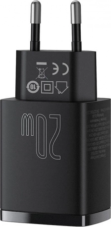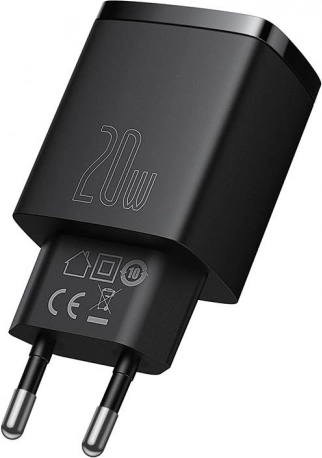 BASEUS 20W hurtig vægoplader med USB‑C og USB (sort)