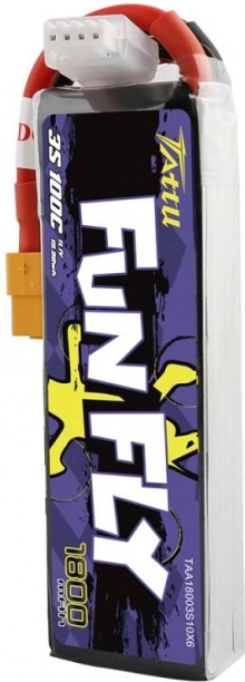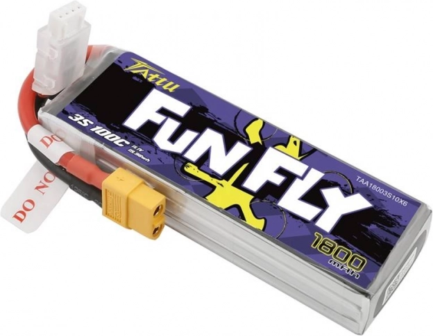 Tattu Fun Fly 1800 mAh 3S er et populært LiPo-batteri til både race og freestyle FPV. Det tilbyder høj kontinuerlig afladningsstrøm på 100C (op til 200C i spids) for øjeblikkelig motorrespons og stabil spænding gennem hele flyvningen. Den robuste konstruktion og præcise celler sikrer pålidelighed og ensartet ydeevne.