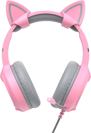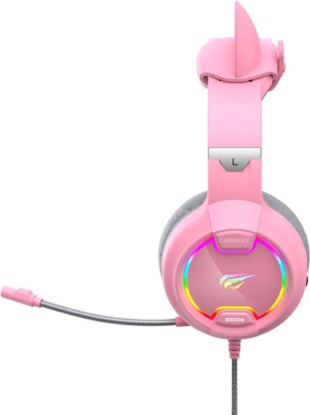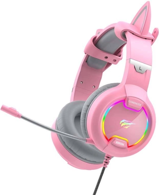 Havit Gamenote H2233D i rosa leverer et sjovt design med aftagelige katteører og en iøjnefaldende RGB-effekt. Med de store 50 mm drivere får du et udvidet lydbillede, forbedret bas og detaljerede effekter for en opslugende spiloplevelse.