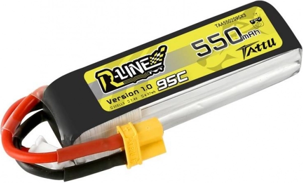 Batteriet tilbyder en kapacitet på 550mAh med en utrolig afladningsrate på 95C, hvilket sikrer høj ydeevne til dine droner.