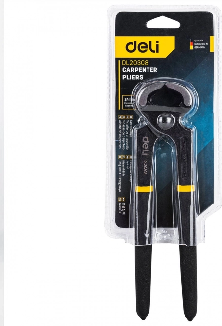 Tømrerbidetangen Deli DL20308 er fremstillet af kulstofstål af høj kvalitet, hvilket sikrer maksimal styrke og lang levetid.