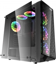 Frontpanelet tiltrækker opmærksomhed med det unikke honeycomb-mønster, som sammen med RGB-belysningen skaber fantastiske effekter. Toppanelet er desuden magnetisk for at reducere indtrængning af støv og gøre rengøring lettere. Kabinettet har to USB 2.0-porte og én USB 3.0-port for nem og hurtig tilslutning af eksterne enheder.
