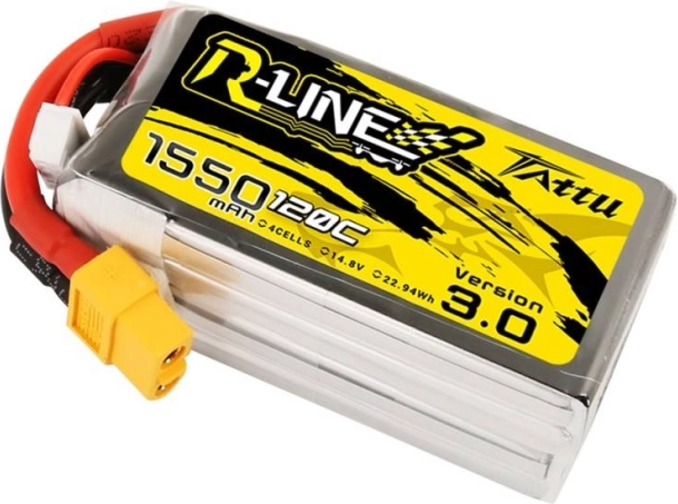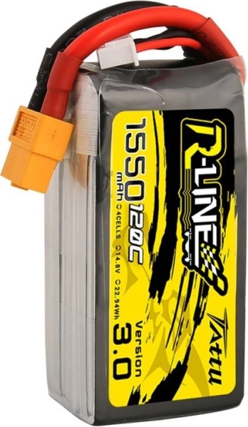 Tattu R-Line-batteriet tilbyder enestående ydelse og kvalitet for droneentusiaster og professionelle. Denne model er udstyret med 4 celler og har en kapacitet på 1550 mAh, hvilket sikrer lang flyvetid og stabil strømforsyning. Takket være de kompakte dimensioner og en vægt på kun 176 gram er den ideel til mange typer modeller.