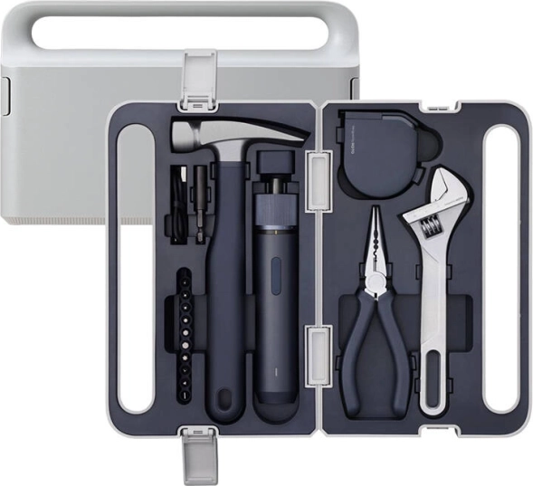 Værktøjskassen er fremstillet af kvalitets ABS‑plast med moderne design og robust konstruktion. Praktiske klips på siderne sikrer nem åbning og lukning, mens hvert værktøj har sin egen plads for overblik og orden.