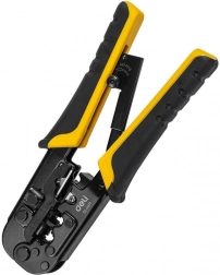 Ét værktøj klarer alt, hvad du behøver ved forberedelse af UTP/STP-netværkskabler. Præcise kæber til 4/6/8P-stik samt integreret kniv og afisolering fremskynder arbejdet og minimerer fejl.