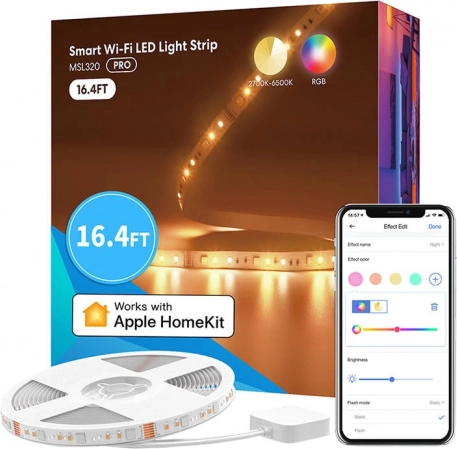 Skab den perfekte stemning derhjemme med den smarte LED-lysstribe Meross MSL320 på 5 m. Den tilbyder RGBWW-belysning med dæmpning og justerbar hvidtemperatur 2700–6500 K, kører over Wi‑Fi og understøtter Apple HomeKit/Siri, Amazon Alexa, Google Assistant og SmartThings. Styr lyset nemt via telefonen eller med stemmen, og brug scener og tidsplaner for et endnu smartere hjem.