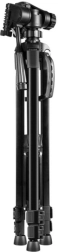 Den robuste konstruktion af aluminiumslegering med tre-sektions ben og hurtigspænder giver styrke og hurtig opsætning i felten. Skridsikre gummifødder står stabilt selv på glatte overflader, og en fjederkrog lader dig afbalancere stativet ved at hænge vægt på op til 3 kg for maksimal stabilitet. I pakken finder du en telefonholder (58–85 mm) og en praktisk transporttaske.