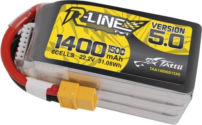 Det kraftige Tattu R-Line version 5.0 LiPo-batteri med kapacitet 1400 mAh og spænding 22,2 V (6S) tilbyder ekstrem belastning på 150C, stabil og kontinuerlig ydeevne og pålidelig XT60-tilslutning. Ideelt til FPV-droner og RC-modeller, hvor hurtig energilevering, stødfasthed og lang levetid er afgørende.