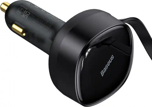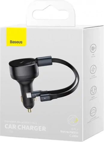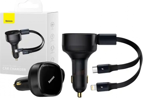Baseus Enjoyment biloplader med integrerede USB‑C- og Lightning‑kabler, 30 W
