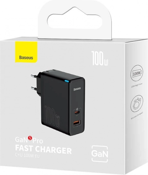 Nyd hurtig og effektiv opladning med Baseus GaN hurtigoplader. Takket være to porte USB-C og USB-A og en effekt på 100W sikrer den hurtig opladning til en bred vifte af enheder, inklusive smartphones, tablets og bærbare computere.