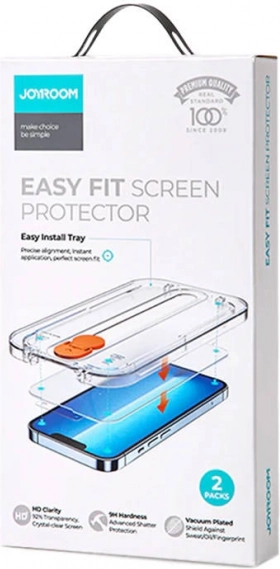 Dette fuldtdækkende beskyttelsesglas Joyroom Easy Fit er skræddersyet til iPhone 14 Plus (6,7"), så det følger skærmen perfekt og giver maksimal beskyttelse i daglig brug. Hårdhed 9H beskytter effektivt mod ridser fra nøgler, mønter og utilsigtede fald, mens den oleofobe overflade reducerer striber og gør rengøring lettere.