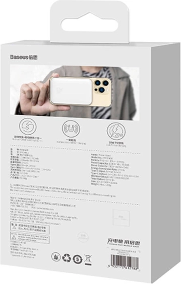 Nyd friheden uden kabler med magnetisk trådløs opladning og samtidig mulighed for lynhurtig energi via USB‑C med op til 20 W. BASEUS‑powerbanken er designet til daglig brug – tynd, let og behagelig at røre ved. Stærke magneter holder telefonen sikkert på plads uden at dække kameraet.