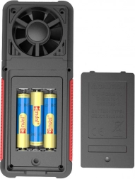 Pakken indeholder et digitalt anemometer, tre AAA-batterier til strømforsyning og en brugervejledning. Takket være det lette og praktiske design kan enheden nemt opbevares og anvendes efter behov.