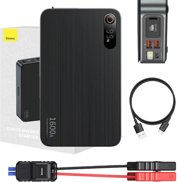 Baseus Super Energy PRO kombinerer funktionerne fra en powerbank og en bilstarthjælp, hvilket gør den til den ideelle rejsepartner. Med en udgangseffekt på 80 W og mulighed for at oplade op til tre enheder samtidig (USB-A1, USB-A2 og USB-C) får du hurtig opladning, så dine enheder ikke løber tør for strøm.