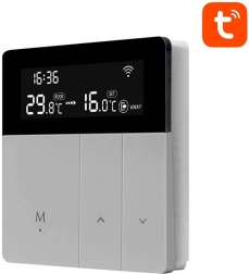 Den smarte AVATTO-termostat til vandopvarmning gør temperaturstyringen nemmere derhjemme og på kontoret. Den tilbyder fjernbetjening via Wi‑Fi, TUYA/Smart Life‑app, planlægning 5+1+1 / 5+2 / 7 dage (6 tilstande/dag), stemmestyring med Amazon Alexa og Google Home og et overskueligt LCD‑display. Derudover er der børnesikring og hukommelse af indstillinger efter strømafbrydelse.