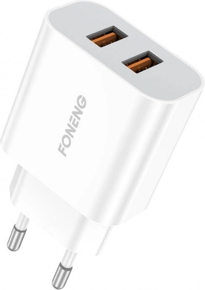 Oplad to enheder samtidigt med den kompakte FONENG‑oplader med effekt på 12 W og to USB-porte. Det brede input 100–240 V er ideelt til rejser, og en intelligent chip beskytter mod overophedning, overopladning og kortslutning. I pakken medfølger et Micro USB‑kabel til øjeblikkelig brug.