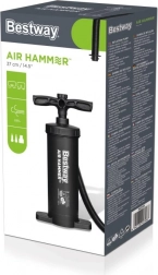 Håndpumpe 37 cm Bestway er den ideelle hjælper til hurtigt at pumpe luft i madrasser, cykler eller strandbolde. Den er udstyret med udskiftelige mundstykker, som gør den egnet til alle typer oppustelige produkter. Pumpen pumper luft både ved op- og nedadgående bevægelse, hvilket effektivt reducerer oppustningstiden. Takket være sin kompakte form er den ideel til ture til poolen eller stranden.