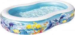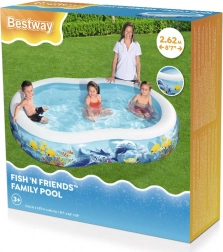 Den oppustelige pool BESTWAY Fish 'n Friends forvandler din have til et farverigt undervandsrige. Den ovale form giver rigelig plads til leg og plask, mens de brede sidevægge sikrer komfort og stabilitet. Kvalitets PVC/vinyl modstår daglig brug i varme sommerdage.
