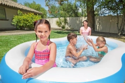 Det oppustelige BESTWAY-bassin er et fremragende valg til have og gård. Det robuste vinylmateriale sikrer lang levetid og modstandsdygtighed over for mekaniske skader og UV-stråling. To separat oppustelige ringe danner stærke og komfortable vægge, som giver stabilitet under både børns leg og voksnes afslapning.
