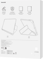 Det minimalistiske Baseus-etui er designet til daglig beskyttelse af iPad 10,2". Forstærkede hjørner og en slidstærk kombination af materialer PU + TPU + PC dæmper stød og forhindrer ridser, mens det klare bagcover og de rene linjer fremhæver tabletens design. Den ultratynde konstruktion med en tykkelse på 2,3 mm og en vægt på kun 150 g sikrer komfort ved både bæring og brug.