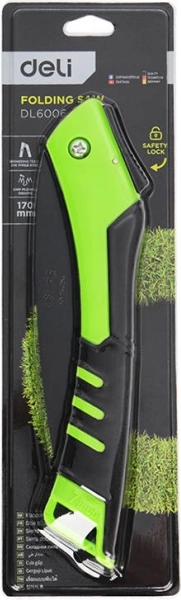 Sammenklappelig sav Deli Tools 170 mm er et praktisk værktøj til have, værksted og feltbrug. De kompakte mål gør den nem at transportere og opbevare, mens den solide udførelse sikrer rene og glatte snit, især i træmaterialer.