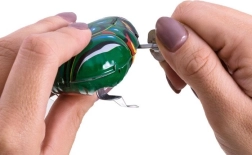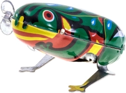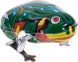 Dette søde legetøjsfrø er lavet af metal i en smuk grøn farve og drives af en fjederdrevet mekanisme, der spændes med en nøgle. Frøen bringer smil til alle generationers ansigter. Med dens små dimensioner passer den nemt i et barns hånd og er perfekt til sjove øjeblikke, når den f.eks. er gemt væk i en taske. Sørg for at have den som en lykkebringer!
