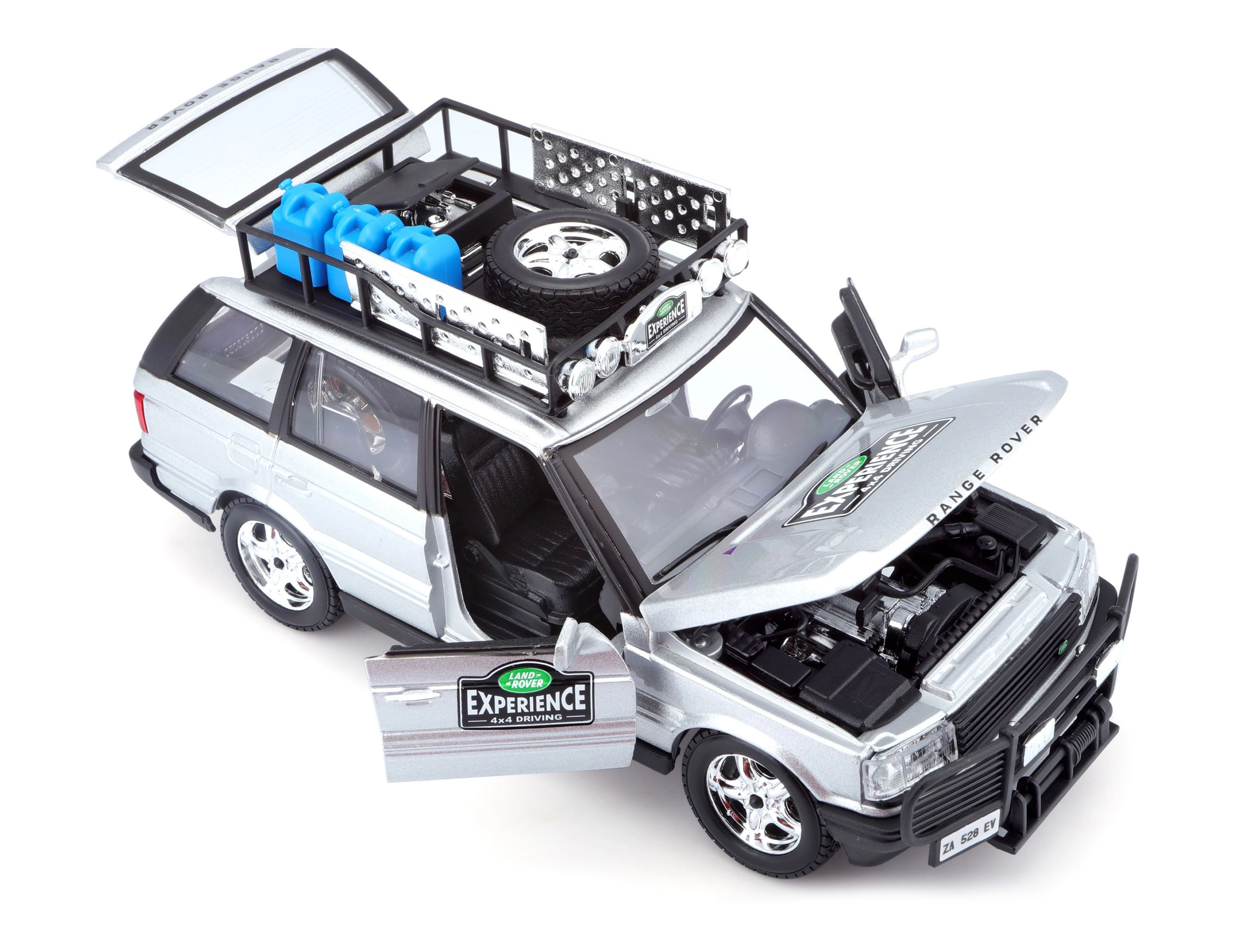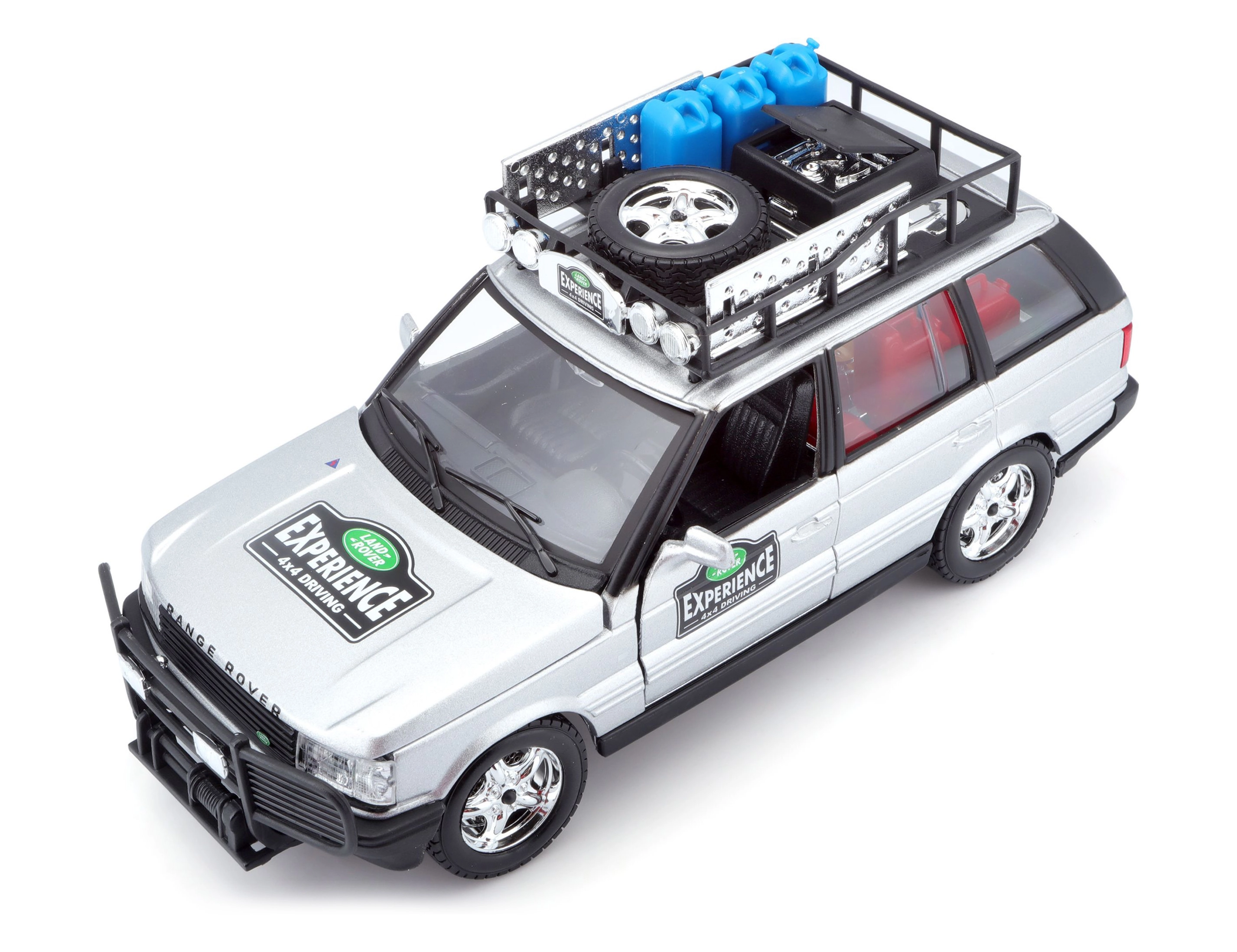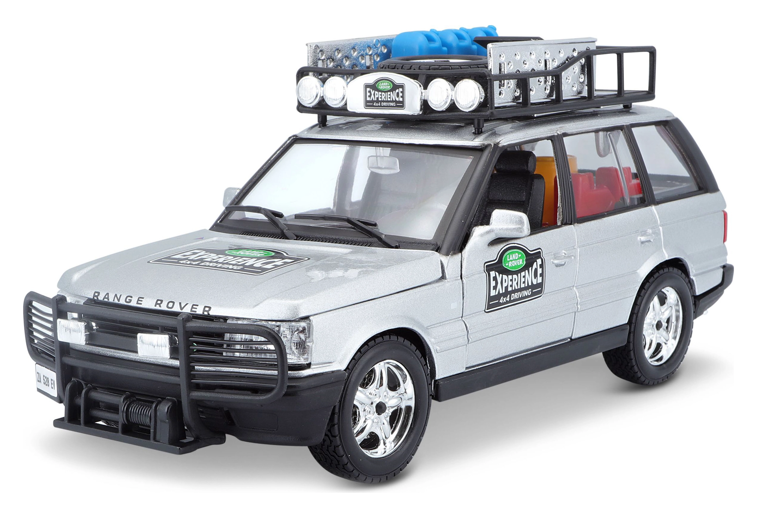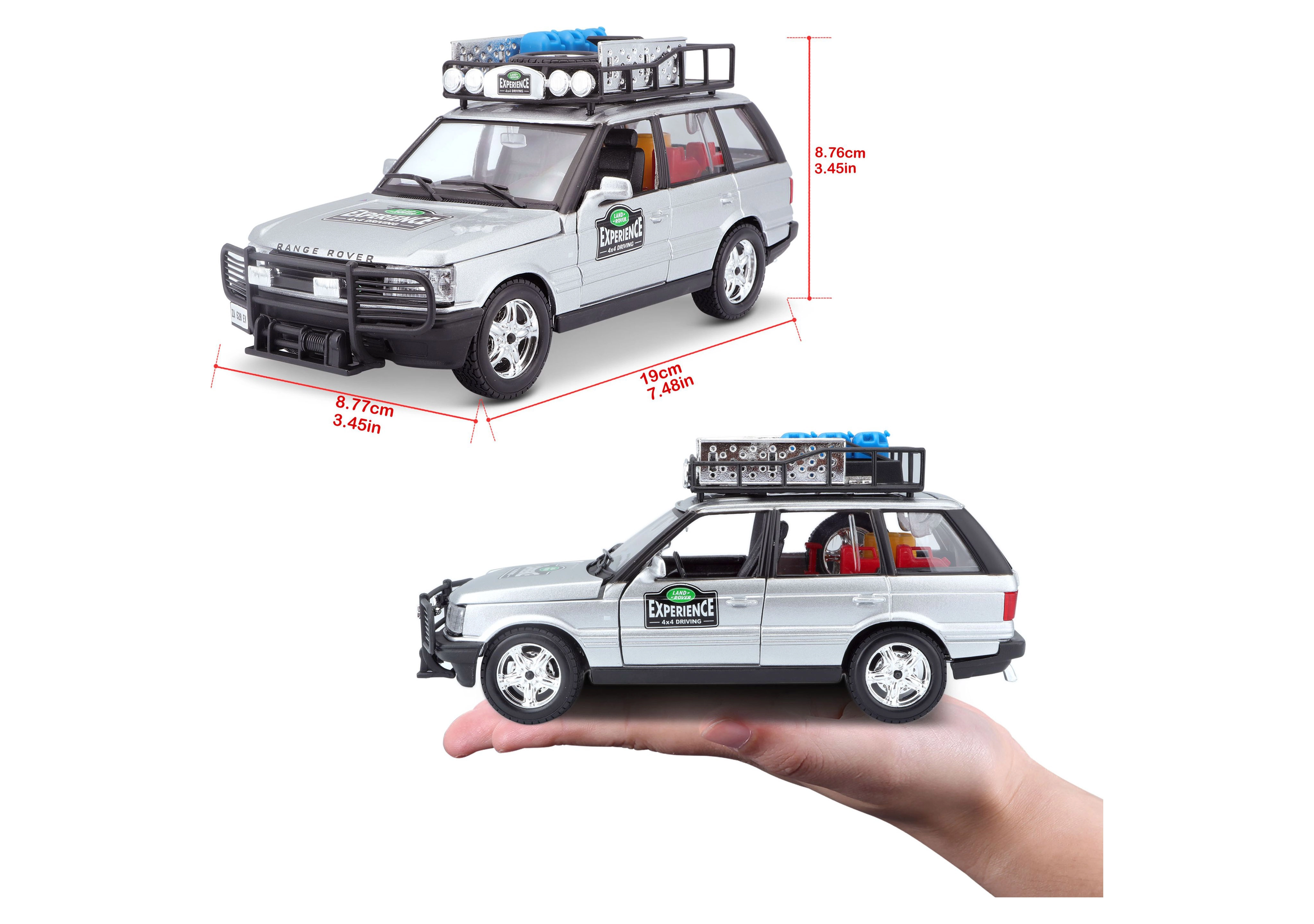 Denne præcist udførte RANGE ROVER-model i skala 1:24 leverer autentiske detaljer, som vil glæde enhver fan af terrængående køretøjer. Den sølvfarvede karrosseri kombineret med tagbærer og tilbehør, frontbeskytter og realistiske decals skaber et attraktivt udtryk til både leg og udstilling.
