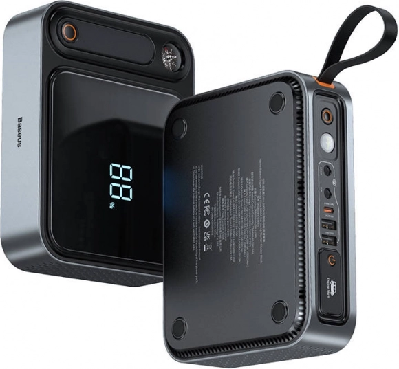 Som en kraftig powerbank med kapacitet på 26.800 mAh (99,2 Wh) kan den hurtigt oplade laptop, telefon og biltilbehør. Til rådighed er en USB‑C‑port med op til 100 W, to USB‑A 5 V/3 A og DC‑udgang 12 V/10 A. Den kan forsyne op til 3 enheder samtidigt (kombineret effekt op til 135 W), mens det digitale display tydeligt viser batteristatus. LED‑lygten med tilstandene konstant lys, SOS og blink øger sikkerheden i nødsituationer – og det indbyggede kompas gør navigationen nemmere.