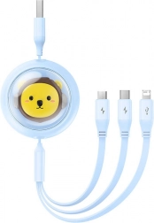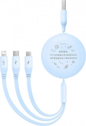Leder du efter ét kabel til alle dine enheder? Dette 3‑i‑1 BASEUS‑kabel kombinerer USB til USB‑C, micro USB og Lightning, så du nemt kan oplade og overføre data mellem forskellige telefoner, headset og tilbehør. Det udtrækkelige design med længde op til 1,1 m sparer plads i tasken og på skrivebordet og forhindrer sammenfiltring.