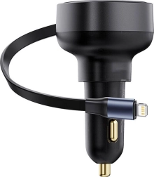 Baseus Enjoyment Pro bilopladeren er designet til nem brug og effektivitet. Med det tilbagetrækkelige kabel på 70 cm kan du tilslutte enheder med Lightning- og USB-C-stik. Takket være den ekstra USB-A-port kan du oplade op til tre enheder samtidigt, hvilket forkorter opladningstiden og sparer tid.