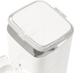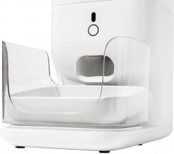 Det avancerede tætningssystem, automatisk lukning af udløbet og reservoir med tørremiddel holder foderpillerne friske og sprøde, mens designet forhindrer tilstopning (piller op til 16 mm). Skålen med ergonomisk hældning på 7° er behagelig ved fodring, og alle dele er lette at rengøre. Strømforsyning via adapter eller 4× AA-batterier giver ro i sindet selv ved strømafbrydelser.