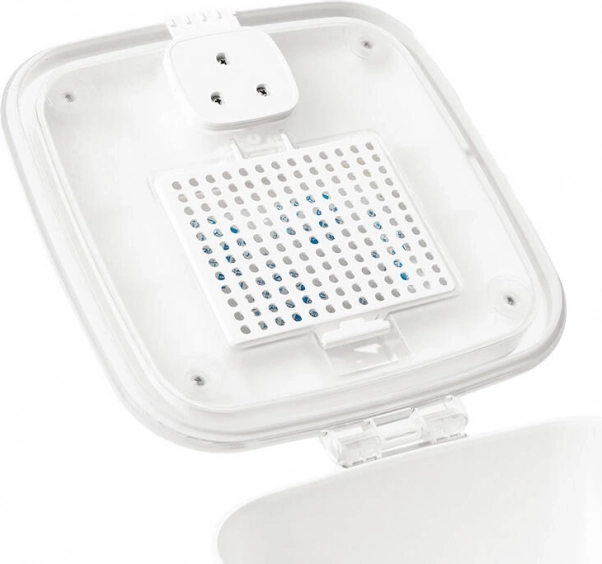 For maksimal friskhed kombinerer den silikoneforsegling, automatisk lukning af udløbet og et tørremiddel. Konstruktionen modvirker tilstopning af foderpiller op til 16 mm, og en skål med 7° hældning gør det lettere at spise. Automaten kan forsynes med netstrøm og 4× AA-batterier og klarer offline dosering ved strømsvigt eller manglende internet.
