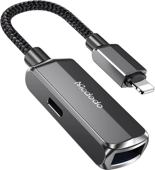 Forbedr mulighederne for din iPhone eller iPad med OTG-adapteren fra Mcdodo. Denne adapter giver dig mulighed for at tilslutte forskellige perifere enheder, såsom harddiske, tastaturer, mus eller kortlæsere til din enhed. Takket være en ekstra port tillader det samtidig datatransmission og opladning med en strøm op til 2,4 A. Den er kendetegnet ved sin holdbare, men lette konstruktion, hvilket gør det til en praktisk ledsager, du altid kan have med dig.