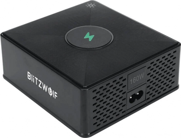 Maksimér effektiviteten på dit skrivebord med den kompakte BLITZWOLF opladningsstation med samlet effekt på 160 W. Takket være de mange tilslutninger 3× USB‑C og 2× USB‑A oplader du nemt flere enheder på én gang – fra smartphones og hovedtelefoner til kraftige laptops. Understøttelse af Power Delivery og Quick Charge 3.0 sikrer hurtig og optimeret opladning.