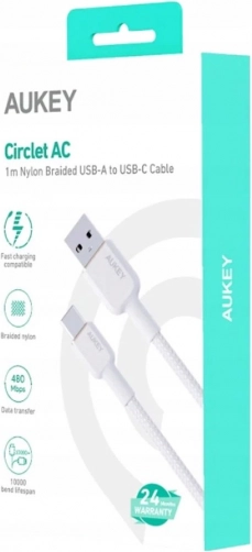 Det alsidige AUKEY USB‑C – USB‑A kabel på 1 m tilbyder hurtig opladning op til 60 W (3 A, 20 V) og stabil dataoverførsel. Takket være den holdbare nylonfletning krøller det ikke og filtrer ikke og er ideelt til daglig brug derhjemme, på kontoret og på farten.
