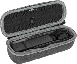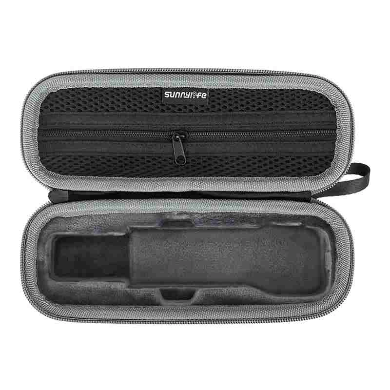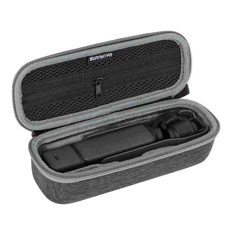Hold din DJI Pocket 3 fuldstændig beskyttet. Sunnylife-etui kombinerer en slidstærk tekstiloverflade med blød polstring, der absorberer stød og beskytter mod ridser. Den indvendige formgivning holder kameraet sikkert på plads, mens mesh-lommen i låget rummer småt tilbehør.