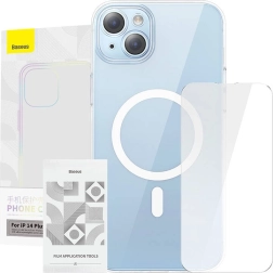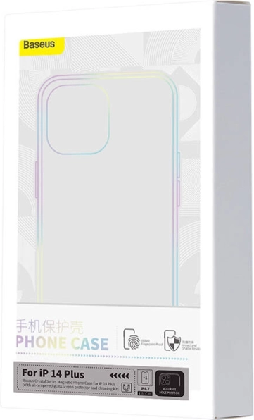 Opdag elegant beskyttelse til iPhone 14 Plus. Det gennemsigtige magnetiske etui Baseus Crystal udmærker sig ved et krystalklart look, som lader telefonens farve træde frem, samtidig med at det giver pålidelig beskyttelse takket være Bayer-materialet. I pakken medfølger også kvalitets hærdet glas for fuld skærmsikring.