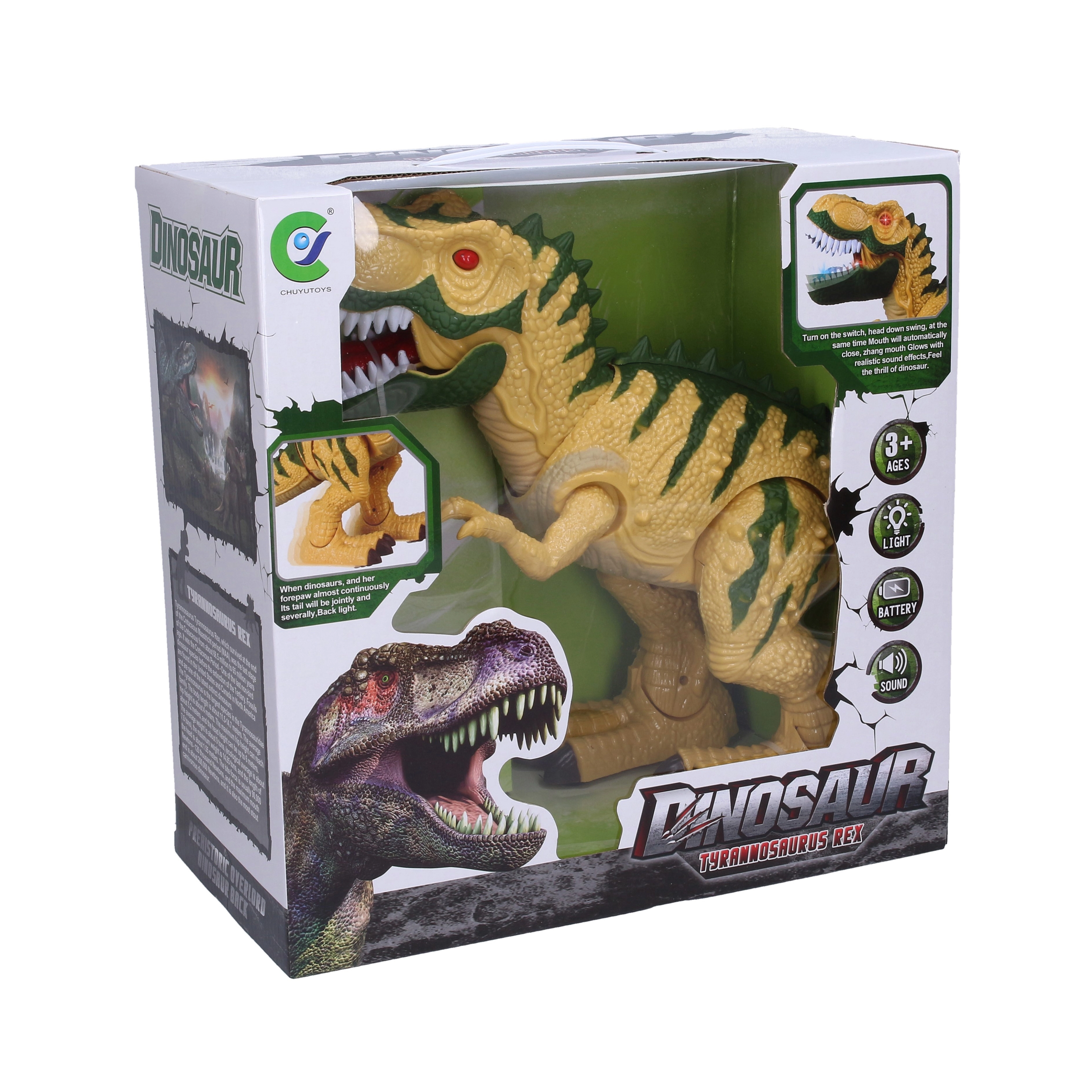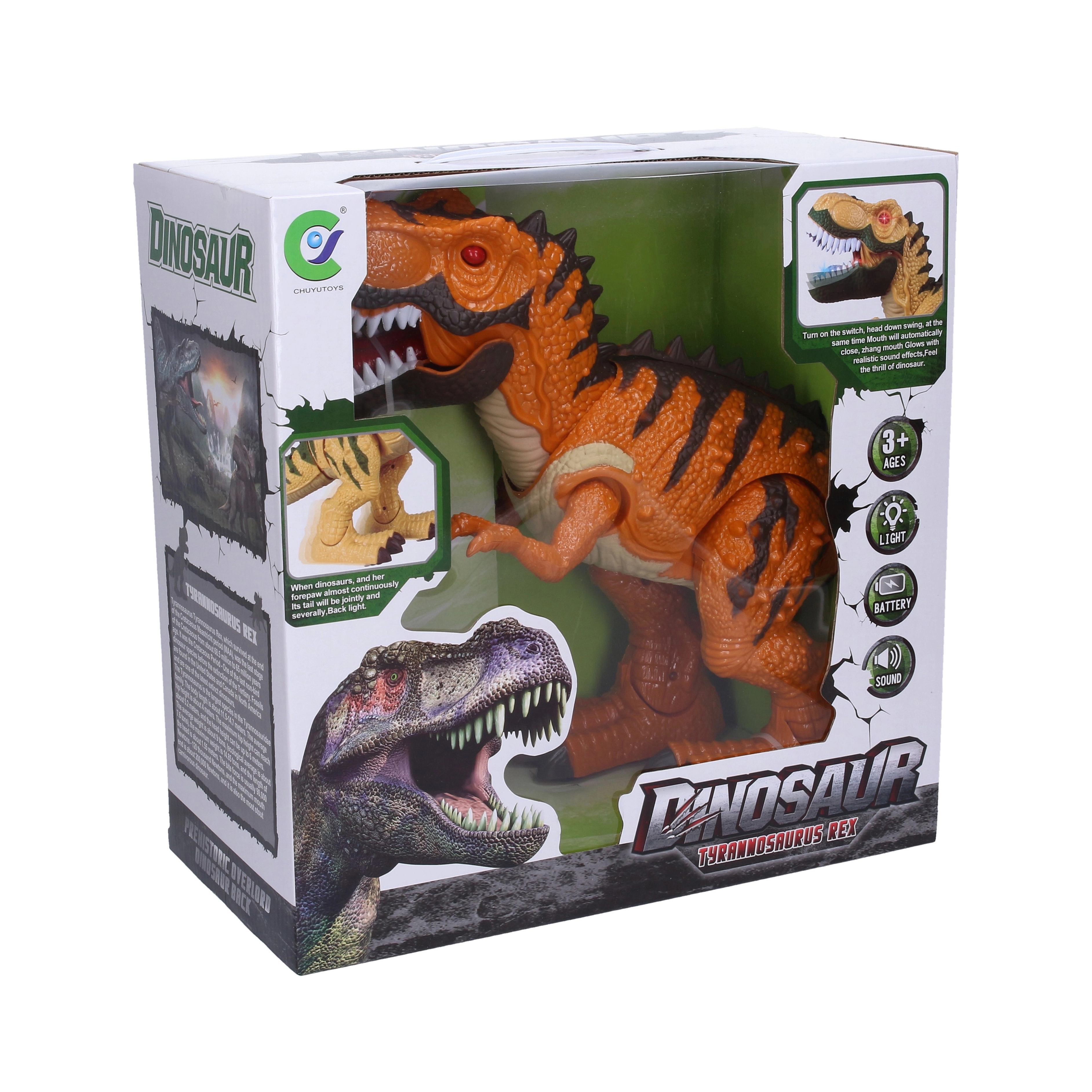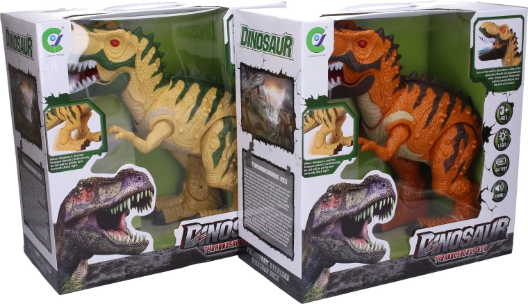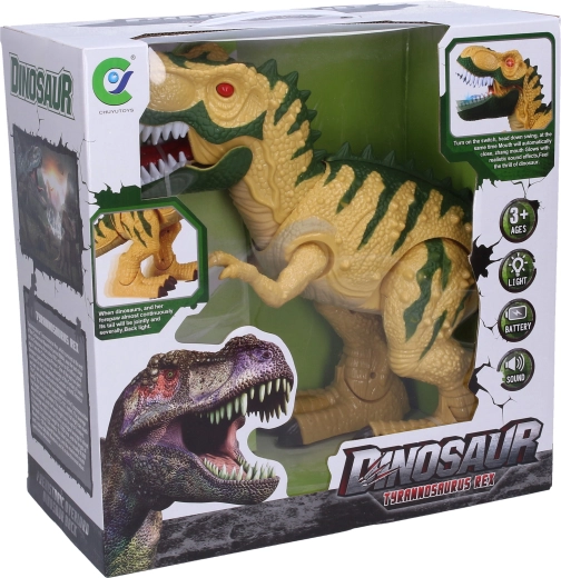 - Bevægelse og effekter – dinosauren går, åbner gabet og afgiver lyde.