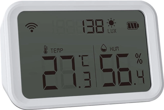 Temperatur- og fugtighedssensor tilbyder præcise målinger fra -20 °C til 80 °C for temperatur og fra 0 % til 100 % for fugtighed. Mulighed for enhedsomregning. Lysintensitetsføleren hjælper med at optimere energieffektiviteten.