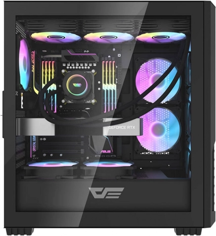 Darkflash-computerkabinettet er fremstillet af 0,6 mm SPCC-materiale, hvilket garanterer styrke og holdbarhed. Med dimensionerne 450 x 210 x 482 mm er kabinettet velegnet til forskellige computersystemer og giver fleksible konfigurationsmuligheder takket være kompatibiliteten med E-ATX, ATX, M-ATX og ITX bundkort.