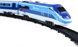 Indeholder lokomotiv, to vogne, 12 buede og 8 lige skinner med en samlet længde på 4,8 m. Skinnerne klikker nemt sammen og kan kombineres efter behov. Sættet er kompatibelt med det populære REGIOJET-tog og kan udvides med flere skinner og sporskifter (sælges separat).