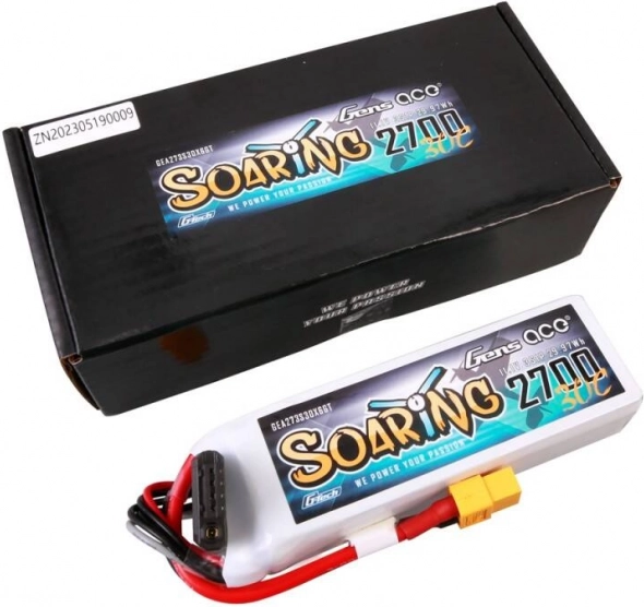 Det lette og kraftfulde Gens Ace G‑Tech Soaring LiPo‑batteri tilbyder en kapacitet på 2700 mAh og en spænding på 11,1 V for stabil strømforsyning til dine RC‑modeller og droner. Med XT60 stik og JST‑XHR balancer er installationen enkel og kompatibiliteten bred. Den høje afladningsstrøm på 30C sikrer pålidelig ydeevne og længere flyvetid, mens de kompakte mål og en vægt på 190 g minimerer belastningen på udstyret.