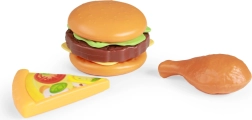 Indeholder mad-efterligninger: hamburger, kylling og pizza.