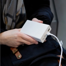 Den er bygget med holdbare lithium-polymer-celler med lang levetid, hvor kapaciteten efter 300 cyklusser stadig kan nå op til 70 % af den oprindelige værdi. Og takket være det stilfulde design, som kombinerer klassisk hvid med imponerende tekniske egenskaber, er den også et æstetisk supplement til dine daglige behov.