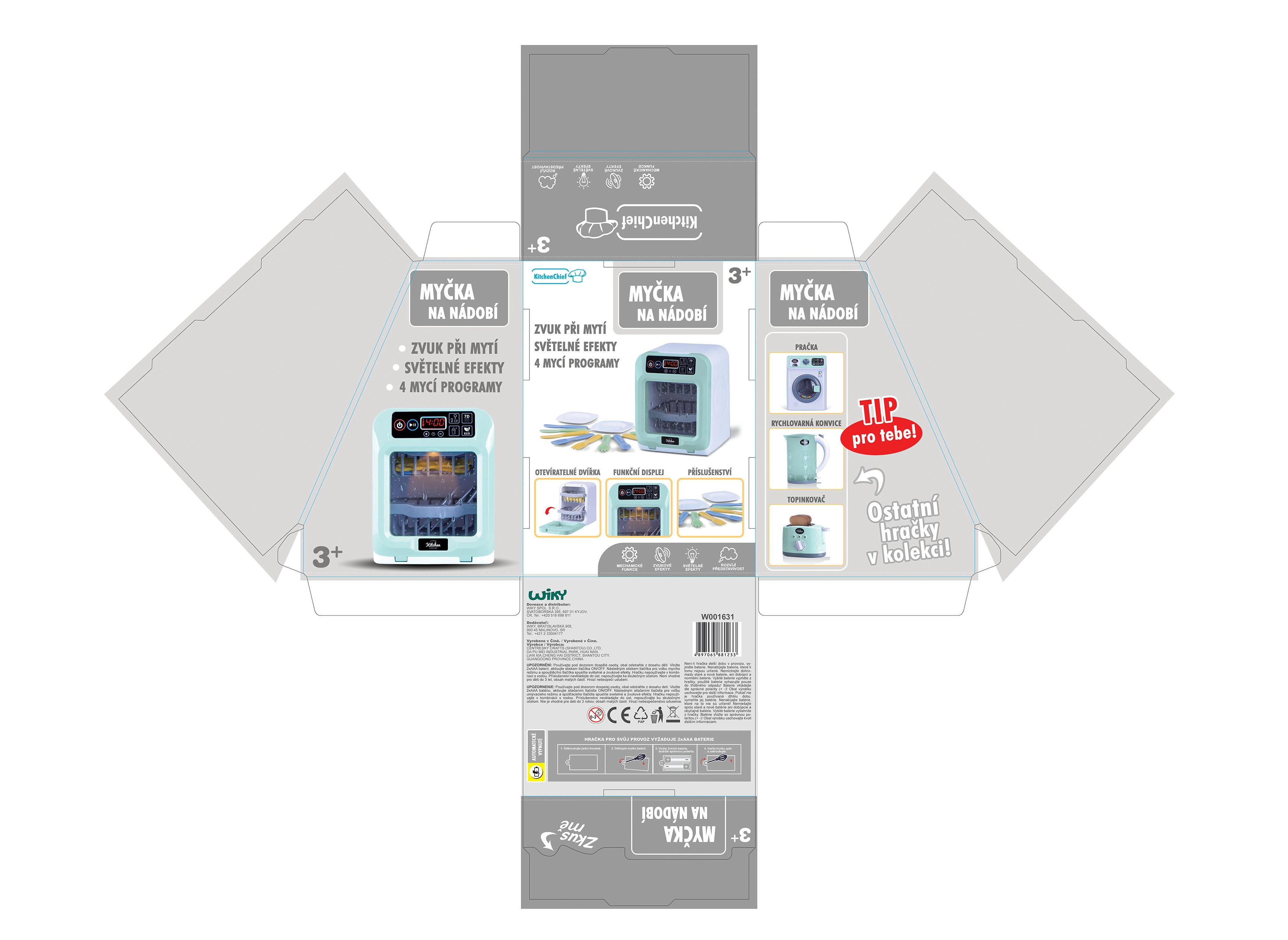 Vælg mellem 4 vaskeprogrammer eller indstil din egen tid efter behov. Opvaskemaskinen er klar til brug lige efter udpakning – 2× AAA-batterier medfølger. En perfekt gave, der både underholder og lærer orden i det lille køkken.