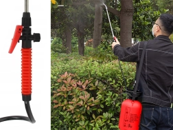 Den lange lanse 58 cm og den fleksible slange 120 cm når også steder, der er svære at komme til. Betjeningsventilen med aftrækker (med mulighed for låsning) sikrer en konstant sprøjtning, skulderremmen skåner ryggen ved længere arbejde, og nem rengøring sammen med reservetætning forlænger enhedens levetid.